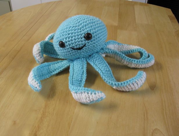 Ma soeur est tombée en amour avec un bébé pieuvre au crochet qu’elle a vu sur le site Trucs et bricolages, clic ICI.